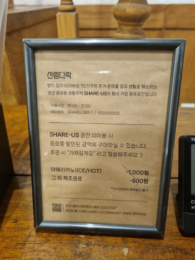 Read more청년쉐어하우스의 커뮤니티 공간으로 설계된 곳이라 하는데, 그래서인지 음료 가격이 저렴한 편이다. 커피 맛도 괜찮다. 지하의 넓은 공간에 혼자 작업/공부, 모임, 회의, 휴식 공간이 적절하게 아우러져 있고, 디자인도 상당히...
