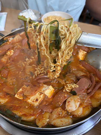 Far better than average "army sausage stew," which consists of spam, wiener, tofu, kimchi, and vegetables. Quite popular around this area so you might have to wait in line in lunch time. Their bowl of rice is also quite good. Be sure to order a dry ramen noodle and...