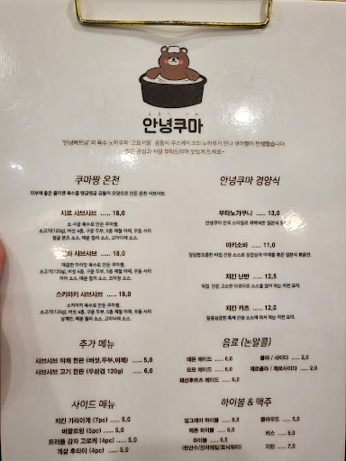 Read more마라 샤브샤브 주문했습니다 곰돌이 샤브샤브 너무귀엽고 마라탕맛나면서 맛있었어요 정말맛있게 잘먹었어요. 음식이 늦게 나왔는데 이에대해 양해를 구하는 직원분도 정말친절하고 서비스 응대방식 너무 좋았어요 눈과 입이 즐거웠어요 테이블이 커서 좋았고 깨끗한 인테리어와 편안한의자도 있어서 편안하게 식사하고 가기 좋았습니다 지글지글 끓일수록 진해지는 육수맛도 감칠맛났습니다 닭고기,돼지고기, 소고기가 나오는데 개인적으로 닭고기가 제일 별로였고 돼지고기,소고기가 샤브샤브와 잘어울렸어요. 다른음식들도 너무 기대가됩니다 재방문의사있구요 좋은 음식 맛있게 잘먹고갑니다...