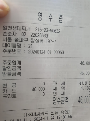 신천생태전문점South Korea, Seoul, Songpa District, Jamsil-dong, 198-7 대양빌딩 1층