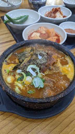 But here.. no more feeling like a dog. You could be a wolf while you're biting A meaty bone..and i could finish soup by dumping the rice... Kimchi is better than kattugi which cube- chopped radish. My thumbs up like a doggy tail. Near no#2 gate of o mok gyo station line #5 purple line. If you're not alone, You try jeon gol it mega size soup. Dig in and bite... and ask them fried rice with some soup.