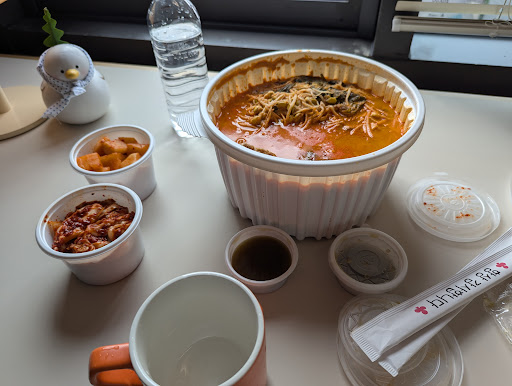 Just passing by on my way back to my accommodation when I saw this restaurant around 0200'sh in the afternoon. They are closing in a few minutes for their break time. I decided to have it to go. The ladies serving food only speak Korean ,they tried to get my order even if they are busy on a closing time. I appreciate their patience. I tried a lot of Korean food but not this one. Funny to say, I ate it first before even researching what it is. I read some of the reviews after eating and it has bean curd in it. The meat is so soft, can eat the meat off the bones, glad I took it home, I don't know how you eat it without using your hands. Very tasty meat especially when dipping in the sauce provided. It tasted really good, the cook understood my instructions for low spicy level....