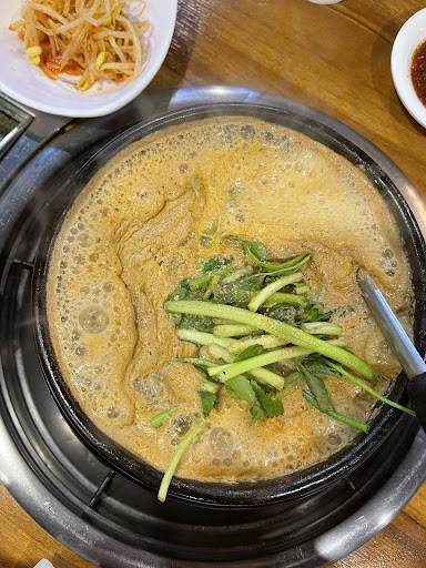 들깨 가루를 아주 미세하게 갈아 넣어 만든 육수를 오리 미나리 등과 함께 오랜 시간 계속 끓여 먹다보면 나중에는 고소하면서도 깊고 진한 맛의 크리미한 국물이 탄생한다. 자극적이지 않은 건강한 새로운 맛을 경험할 수 있다.