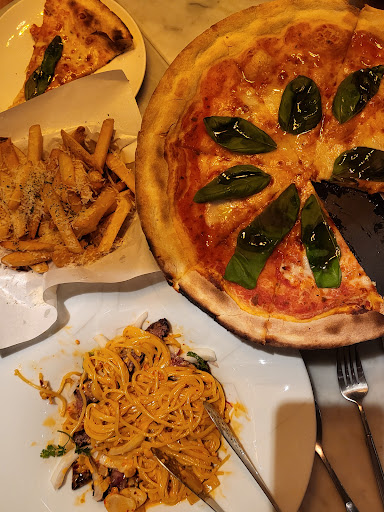 명란 오일 파스타는 간이 하나도 안 세고 맛있어서 마음에 들었고, 마르게리타 피자 역시 고소하면서도 새콤하고 맛있어서 좋았어요.