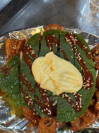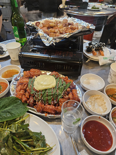 •Salt-Grilled Makchang: The savory and rich flavor really stands out, perfect for enjoying the true taste of makchang! 🍖 •Marinated Makchang: Sweet and spicy marinade complements the chewy texture, making it a real crowd-pleaser. 🌶️ •Doenjang Soup(alcohol not real🤣)Rice: A hearty finish with the deep, earthy flavor of doenjang that pairs perfectly with a drink. 🍚 •Side Dish (Chwinamul): Fresh and crisp, this side dish is exceptional and enhances the meal. 🥬
