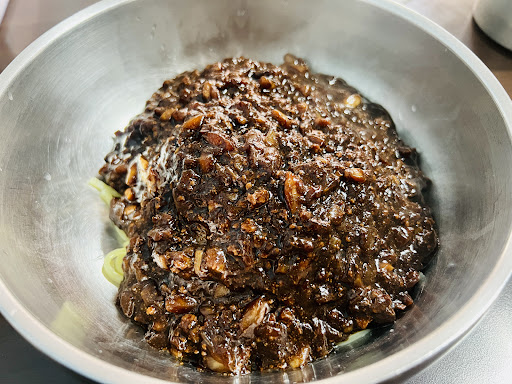 면 두개에 나눠서 간짜장소스를 붓고 잘 비비는데 간짜장소스는 면에 잘 달라붙는 타입은 아니고 물이 생기는 타입도 아니어서 뭔가 연남동 포가의 유명메뉴인 마늘쫑면과 비슷한 제형으로 그런 느낌을 좋아하는 나는 기대감이 상승함.