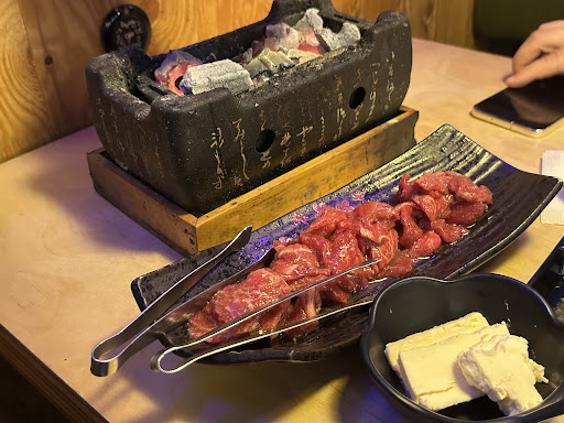 대표 메뉴인 소고기 야끼니꾸 구이는 둘다 먹어봤는데 버터는 따로 추가하고 부채살 부위를 추천! 소고기는 식감이 부드러우면서도 육즙이 꽉 찼음. 한입 베어 물면 고소한 향이 입안에 퍼지는데, 버터 추가(+3,000원)로 구우면 풍미가 훨씬 깊어짐. 고기 익는 냄새만으로도 술 한잔이 절로 생각남.