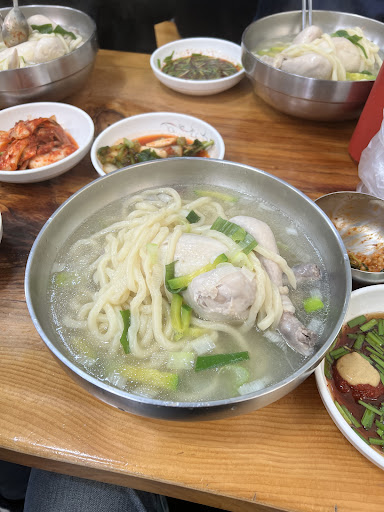 Read more점심먹기 딱 좋아요. 따뜻한 닭육수에 닭한마리가 통째로 들어있는 칼국수가 메인이에요. 서비스로 나오는 보리밥 비빔밥(보리밥+열무+고추장)도 간단한데 정말 맛있어요.