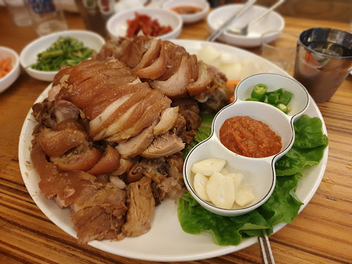 Read more위치가 떨어져 있지만 참신기하게 족발집이 모두 몰려있다. 2층까지 있는집인데. 족발시키니 된장국이 너무 좋다. 바지락이 몇알들어간게.초반 러쉬 가능. 족발 야들야들 맛있게 넘어감. 곁들이 반찬이 상당하게 나온다.순두부가 참 소주를 부를수 없는 빨간색이다. 가격도 주변보다 적당한 가격에 즐길수 있게한다. 쟁반막국수 들기름.쳐있는데 감칠맛이 장난아니다 1차가서 맛있게.먹을수 있는집인듯 그리고 느끼할때 잡아주는.새콤한 무생채 이놈이 또 소주를 부른다 진절하신.사장님이 계셔서 맛있게 잘먹고온 하루...