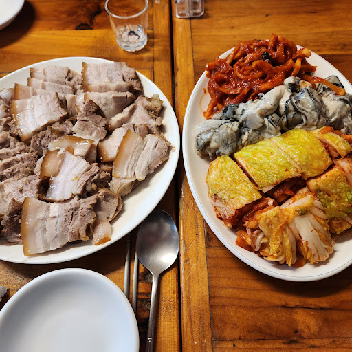 보쌈고기가 정말 기가막히다. 국내산 생오겹살을 사용하시는데, 껍질과 비계층이 쫀독쫀독한 느낌이 나면서 꼬소 보쌈집이니 보쌈용 양념이 중요한데, 이집은 갓만든 보쌈김치를 한덩이 주신다. 깔끔한 무채속을 살포시 절인 배추에 넣어 주시는데 너무 맵거나 달거나 MSG에 의존하지 않고 손맛이 느껴지는 적절한 양념이고 시원하다. 거기에 제철은 아니지만 비린향 없는 굴을 함께 먹으면 돼지의 눅진함과 경쾌한 느낌의 보쌈김치가 인상적으로 조화롭다. 참 맛있는 조합이다.