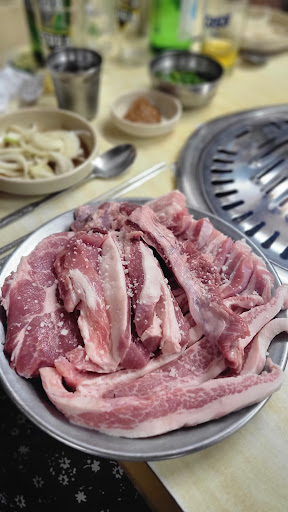 Read more저번에 갔을때 못먹었는데 이번에는 널널히 자리도 많고해서 먹어봤습니다! 직원분이 추천해주신 오겹살 맛있었어요:) 목살도 괜찮았네요~ 따로 주문한 청국장 비빔밥 다맛있어요 기본찬으로 나오는 파김치도 고기랑 잘어울렸습니다. 그런데 메뉴판에 고기가 몇그램 인지 표기가 안되있어서...