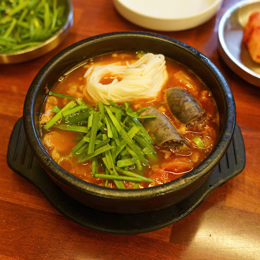 보통 순대국들은 내장 부속물이 많이 들어갔다면 여긴 거의 머릿고기와 순대만 있다. 고기는 야들야들한 맛은 아니지만 밥과 먹었을 때 술술 잘 넘어간다. 순대는 돼지 피와 찹쌀을 섞었는데 당면이 아니라 찹쌀과 피를 넣은 맛이다. 순대 껍데기도 질기지 않고 부드러운 편. 순대는 꽤 괜찮은 편. 주인장이 직접 속을 채우는 모습을 본적도 있다 물론 3-4년전 왔을 때 그 감동은 아니다. 그 땐 더 괜찮은 순대국이었던 것 같은데 말이다. 거기에 미리 삶아둔 아주 소량의 소면을 작은 종지에 담아 주는데 넣어 먹으면 별미다. 부추도 넣고 양념장 들깨를 넣고 먹으면 된다. 양은 많은 편도 적은 편은 아니다. 같이 나오는 밑반찬인 열무김치와 무김치는 간이 심심한 편이다. 정통적인 순대국 맛이랑은 조금 다르다. 부속물이 많지 않기에 깔끔하고 잡내가 나지 않는 돼지국밥에 가까운 순대국이라고 볼 수 있다. 이 경우엔 깊은 맛이 부족하다 느끼는 사람도 있을 것이다. 잡내 안 나고 먹을만한 순대국 한 끼를 하고 싶다면...