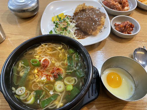 Read more콩나물국밥집이지만 돈까스도 유명해서 한번와본곳!! 기본반찬은 김치2종, 오징어젓갈이지만 무말랭이가 더 많이 들어잇는건 함정 ㅋㅋㅋ 그리고 조그맣게 콩나물국물도 줍니당. 돈까스는 크게 두껍지 않은 편이고 같이준 콩나물국물은 좀 조미료맛이 강한느낌 ㅠㅠ 공기밥은 일반사이즈보다 살짝작은 밥으로 주지만 돈까스에 온전히 공기밥 하나 주는곳은 처음봐서 살짝 당황 !! ㅋㅋㅋ성인남성은 든든히 점심식사 하실수잇을것같아요!! 그치만 제가 방문한 시간이 1시가 넘어서 그런지 식사하시는분들도 많은데 빗자루로 청소를 시작하시더라구요ㅠㅠ 그래서 별점 뺍니다ㅠㅠ 여튼...