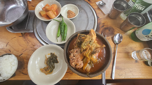 밑반찬으론 깍두기와 고추 그리고 쌈장 이렇게 세 가지만 나오고 부족하면 알아서 리필해 먹으면 된다. 잘 익은 깍두기 맛이 일품이어서 두어 번 정도 리필해 먹었다.