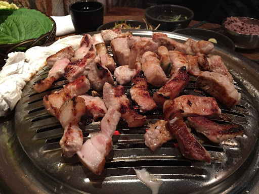 This restaurant's popular menu is Jeju heug dwaeji sogeumgu-i (Grilled black pork with salt). You can get small chunck of pork when you order it and say, I will pay cash. Also, if you order rice, they will offer free Kimchi...