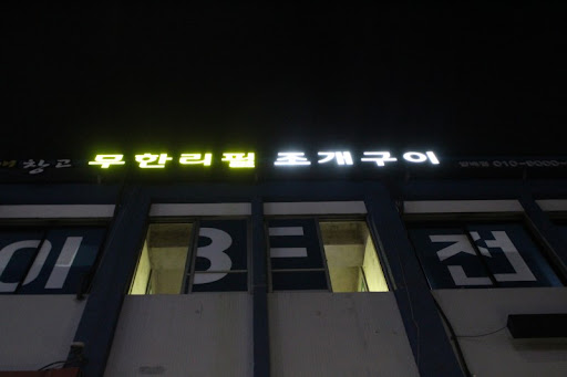 Read more식사비용은 인당 25500원이며 두개의 다른 접시들로 하여금 각각 조개류와 고기류를 무한으로 담아가서 먹을수 있는 시스템이다. 다른 리뷰에서 많은 분들이 추천했다시피 조개류에서 가장 추천하는 메뉴는 키조개 왜냐하면 첫번째로 불을 강하게 놓아도 조개구이가 익을때까지는 시간이 걸리는 편인데 다른 조개들은 사이즈가 작아서 걸리는 시간에 비해 양이 너무 적은 편이다. 키조개는 관자가 매우 커서 한번 구우면 남자 둘이 맛있게 먹을정도 양이 나온다. 두번째로는 다른 곳들의 비해서도 키조개의 퀄리티가 굉장히 준수하여 키조개를 추천한다 조개류와 고기류 외에도 많은 밑반찬들과 라면류, 찌개등을 끓일수 있는 재료들이 많이 준비되어 있지만 무한리필의 특성상 가장 가성비가 좋게 식사하려면 다른곳에서 먹기 힘든 식재료를 고르는것이 가장 현명하다고 본다 (사실 높은 식사비용을 생각하지 않는다면 먹고 싶은것을 먹는것이 가장 좋겠지만) 그러므로 육고기류에서는 살치살 토시살과 같은 소고기 위주로 추천한다. 조개창고라는 이름에서 고기의 퀄리티는 엄청 좋은 편은 아니지만 무한리필치고는 먹을만한 퀄리티다. 이 식당의 최대 단점은 첫째로 모든 테이블에서 엄청난 화력으로 불을 쓰기 때문에 굉장히 더운것과 그걸 막기 위해 에어컨이 아닌 대형선풍기를 써서 불이 엄청 날린다는 것이다. 필자와 같은경우 불에 손의 털이 그을리는 상황도 생겼다. 다른 또 하나의 최대 단점은 환풍을 전혀 신경쓰지 않는다. 어떤 테이블에서 무언가가 타기 시작했더라도 환풍을 시키지 않아 연기때문에 눈이 엄청 맵다. 다녀온다면 온몸에 연기냄새가 배어 샤워와 빨래는 필수가 되어버린다. 추천하는 분들은 여러가지 음식을 즐길수 있는 친구분들이나...