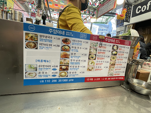 Hi to all my friends who r planning to visit 광장시장 I highly recommend this place ! Food is good as well as reasonable price I believe If u r new to Korean food I recommend u to order Bori bibimbap and anything that comes with soup (My favorite is naeng myun 냉면) otherwise in the summer season u can also enjoy bean-noodle (콩국수) 🧚♀️💕 Also server has fantastic color of hair and she is really enthusiastic...