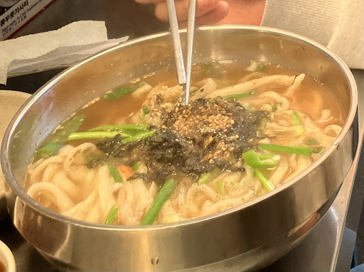 Read more朝ごはんに美味しいカルグクスを食べたくて、口コミを見まくってこちらに決めました。 期待通り、美味しい!!カルグクスでした。お店毎にかなり味が違いますが、美味しい出汁のきいたスープと胡椒のアクセント、麺も目の前で手際よく切って茹でて、コシもありツルッとして、最高に美味しかったです! マンドゥも手の込んだつけダレとともに、ジューシーで大きくて、美味しかったです! 他のメニューも食べてみたいと思いました。 ご馳走様でした!