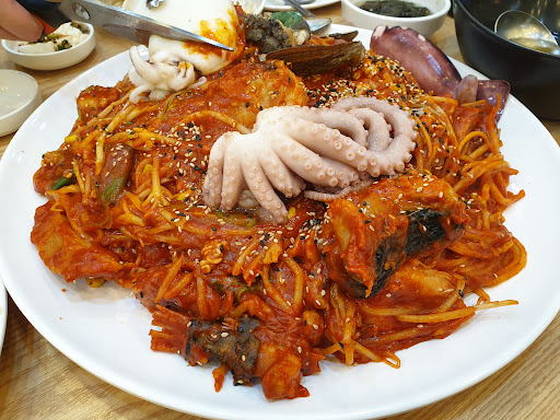 양이면 양, 맛이면 맛 무엇하나 빠지지않은 해물찜 맛집. 4명이서 사이즈 중짜 시키면 딱 맛있게 먹을수있다. 해물을 원래 그대로 주기때문에 직접 잘라서 먹어야한다. 혹시 그게 귀찮다면 주문하면서 해물을 미리 잘라달라고 하면 더욱 편하게 즐길수 있음. 매운맛은 보통으로 시키면 일반적인 한국인 입맛에 매콤하다고 느낄정도의 맵기 정도이다. 너무 자극적이지도 않고 딱 좋은맛 해물이 많이 들어있어서 비교적으로 콩나물이 적은 느낌^^ 볶음밥도 맛있고 기본반찬으로 나오는 미역국도 맛있음. 주차도 가능하니 회식으로 찾기 좋은...