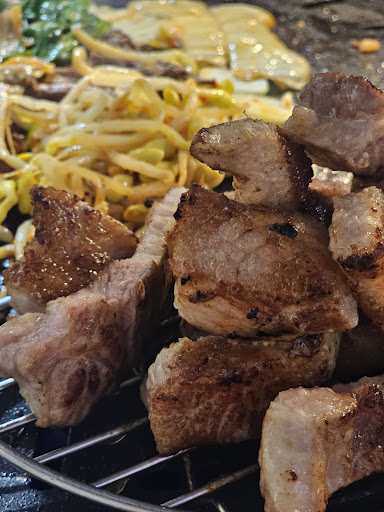삼겹살과 목살 항정살 모두 두툼하고 잡내 1도 없이 구수함 그 잡채~👍👍 숯불이 아닌데도 너무 맛있고 김치와 콩나물 등을 함께 구워 먹으니 꿀맛입니다 😀🥩