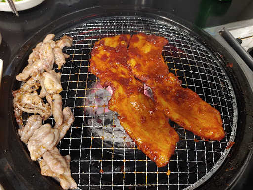 맛있습니다. 그런데 주문이 잘못 들어가서 결국 종류별로 다 시켜 먹게 되었습니다. 아이들과 함께 가서 아마도 매운건 안시키는 줄 알았나봅니다. 소금, 매운양념, 간장양념이 있습니다. 적은 순서대로 맛있었습니다. 맵찔이한테는 매운양념 보통매운맛도 너무 매운가 봅니다. 아내가 너무 매워 귀가 아프다고 하네요. 아, 여긴 철판닭갈비 아닙니다. 숯불에 구워먹는 닭갈비이고 초벌로 익혀 나오기 때문에 바로 먹을 수 있습니다. 껍질면을 그릴쪽에 두면 달라붙어 껍질이 분리됩니다. 구울 때 참고하세요. 소금 2 퐁듀세트에 양념 1 단품을 시켰는데, 간장양념이 나왔네요. 아이가 매운양념을 먹고싶어해서 하나 더 시키며 세트로 바꿀 수 없냐고 물어보니 나오는 고기 양이 달라서 안된다고 합니다. 세트는 더 적게 주나보네요. 그런데 단품이 더 양이 많다는 느낌도 없었습니다. 세트가 더 저렴한데, 고기 양 주는게 크진 않은가 봅니다. 메밀국수도 시켰는데 어른들 입맛에는 괜찮았는데 아이 입맛엔 별로였나봅니다. 먹고나니 엄청 배불렀고...