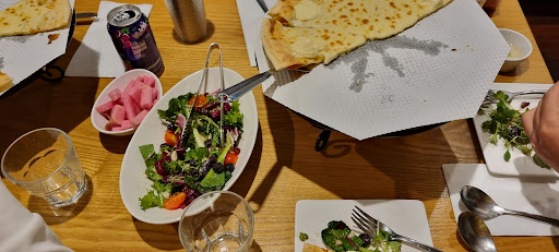 Read more지나다니면서 보다가 가족 생일 모임이 있어 미리 예약하고 방문. 안심스테이크 세트메뉴(안심스테이크+파스타+피자) 3세트 주문했는데, 전반적으로 음식은 나쁘지 않은 편이나 많이 먹는 사람이 없음에도 불구하고 양은 매우 적어 리조또와 파스타 추가했음. 초딩2 포함 9명이 식사하는데, 빈 테이블이 많음에도 좁다란 4인테이블 2개 붙여줘서 음식 놓을 자리가 없을 정도로 정신없고 복잡했음. 음식이 한번에 나오면 자리가 좀 여유있어야 할텐데, 그런 배려가 없었네요. 밖에서 보는 것과 달리 내부 분위기는...