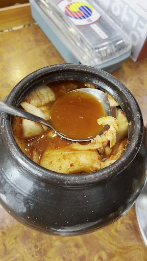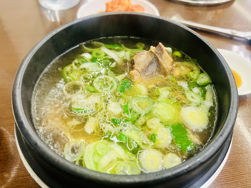 왕갈비탕은 보통 다른 식당과 비슷하게 나오지만 갈비 크기나 양에서는 좀 많이 부족한 것 같다! 그리고 돌솥밥을 주는 식당도 많은데 여기서는 그냥 공기밥에 주고, 반찬은 김치와 깍두기가 같이 있는 항아리가 전부였다! 국물은 많이 우러내서 그런지 구수하고 시원한 맛이어서 좋았다!