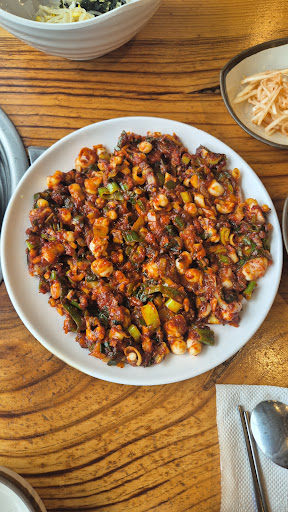 지하에 있을 때 자주 가고 이전하고 처음 가는데 2층으로 올라와 매장이 쾌적해지긴 해졌습니다. 기본인 낙지볶음은 정말 훌륭합니다. 맵지 않은데 참 담백하고 맛있네요. 시그니처 메뉴 낙지두루치기와 후식 볶음밥은 오랜만에 먹으니 조미료 맛이 너무 나고 기름이 좀 많아서 예전 느낌이 아니라 아쉬웠네요. 양념을 좀 더 담백하게 해야 할 듯.