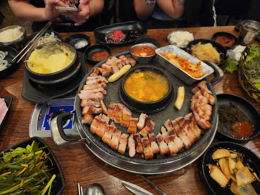 MOOD:People's voices and grilling meat are loud and pleasant. FLAVOR:Meat is always delicious. PRICE:The price is resonable. *There is a slight waiting time. *The table is little narrow *If you have a dish called '소한마리', you can get a plate of raw beef for free. And soybean paste stee will come...