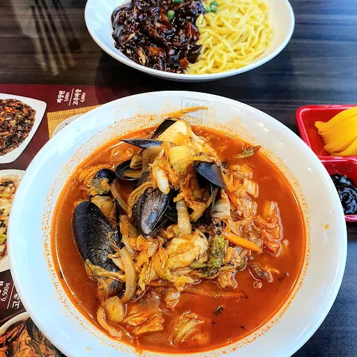 Having often seen actors and actresses enjoying traditional Korean noodles with thick sweet soy sauce in various Netflix Korean series, we were inspired to try it for ourselves. Alongside the soy sauce noodles, we also ordered a spicy noodle soup and sweet and sour fried pork. The service was impressively quick, and the presentation of the dishes was visually appealing, with vibrant colours and generous portions.