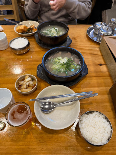 Place is clean. Menus on the walls are easy to see no matter where you sit. I ordered 설렁탕 and it was served with in 2 minutes. Food was delicious. It was so good in fact I would have ordered another bowl if I hadn’t become so full. They provide 깍두기 and 김치 in large metal bowls that you can transfer to smaller ones.