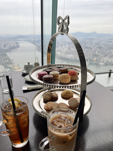 Just happened to see this place while going up to Seoul Sky Tower and we decided to drop by for a high tea. We managed to get the window seating but it was at the corner. Since our order hasn't arrived yet, one central table with a good vantage view has opened up hence we politely requested from the staff if we can move there.