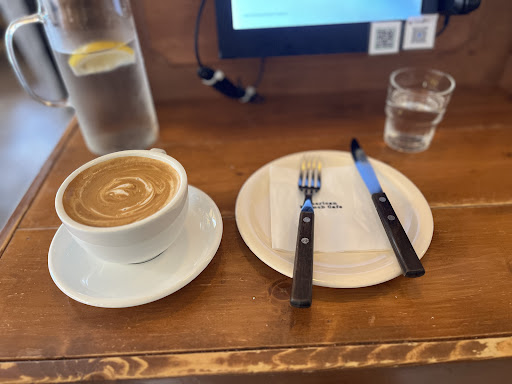Very friendly and welcoming staff with fluent english. Great quaint atmosphere. As soon as you are seated by the staff, they bring a bottle of water with a wedge of lemon to infuse, to the table. Easy to order from the menu on the monitor at the table. Photos of food with prices as you browse the menu when ordering. The food is amazing. A good range of Eggs, Omelettes, Pancakes and French Toast options and choices for side dishes. I chose the French Toast with fruit and a sausage as a side dish. It came very well presented with attention to detail. It included whipped cream, jam and honey. I also had a Cafe Latte too, which was excellent for my Australian taste. The sausage was very well cooked and very juicy. Yum 😋 After ordering you pay straight away with options for credit card, cash and even an option to split the bill/ check...