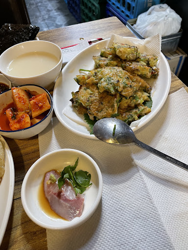 ย ย ย Read moreBest place to eat in seoul! Family restaurant I was welcomed warmly, They offered me food and drink as I was a traveler!!! I had a bowl with rice vegetables eggs, nokdu bindaetteok (mung bean pancakes) , potato pancakes ๐ then some raw fish (amazing); I tried the Makgeolli drink (made of rice) and...