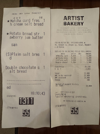 First of all staff did not possessed any basic English language to service the international crowd. Second of all, the female staff directing the trafflic for payment is the worst traffic controller ! She acted and behaved like a robot without emotional intelligence, no flexibility to direct the customers whom are ready for payments to the cashier. Instead she held all the customers both ready for payment and those customers whom are still selecting at the cream cheese refrigerator section. This in turn messed up the crowd within the tiny room, witheld alot of unnecessary crowd within that tiny space due to the staff’s inability to think on her feet ! Basically, the foolish staff acted like a robot merely following the flawed operational procedures ! A total waste of time to held back customers whom are ready to pay together with the bunch of customers still in the bread selection. The female cashier is useless in counting cash, kept insisting that we are short of 1000won when she has miscounted and is hopeless in MATH ! Again, the foolish cashier repeatedly asked for our name instead of focusing on her only 1 task on hand, to collect payment via card or cash. And get this task accurately done.