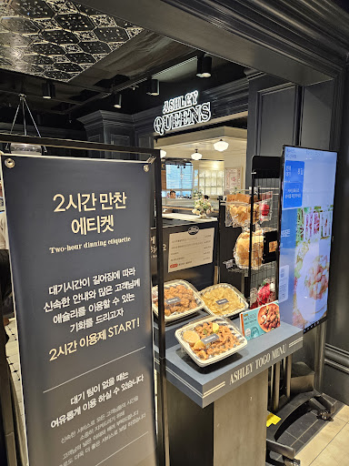 this ashley queen's branch has a higher quality food than the other branches. however, the downside is that the reception at lunch was so busy they weren't able to accommodate queries, and you'll have to figure things out on your own using their kiosk system. fortunately there is an english option which partially translates what you need to do. first: if there's a number on the left (the waiting list number) you'll have to enter click the left button and enter your phone and number of people that are in your party. you'll get a kakao message once your queue number is up (yes. you need both kakao and a korean phone number. otherwise you'll need to wait for reception staff to be available). one you get the notification, go to the kiosk again, click the button on the right, enter the same phone number and select which option you'll purchase (buffet, single serve steak) then proceed to pay with your credit card. hopefully this helps anyone having trouble with their...