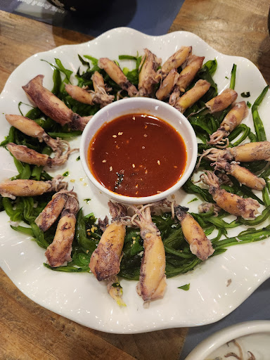 Amazing fresh Fruit soju drinks! Especially the pineapple, which was actually served in a pineapple (and a pitchet). The cheesy pumpkin was also incredible. It's an anju place that is worthy of your Instagram. The music is super chill (reggae when I went but he had a huge record collection) and the owner is completely charming and hilarious. Can't wait to return...