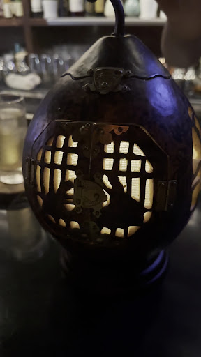 I tried a couple cocktails, first was the 대박 aka Awesome, which includes Tak Ju, Yuzu, Lemon and Sparkling Water with some herbs on top. It was dramatically served in a hollow gourd with rice paper doors, dry ice vapor pouring out of it. It was very refreshing and light.