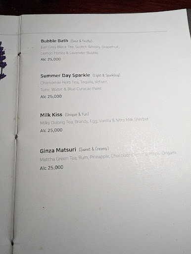 Read moreThis place feels like a confused cocktail of Tokyo, Kobe and Seoul. The speciality tea cocktail concept falls short of expectations and lacks the atmosphere of its Japanese counterparts (try Mixology Salon in Ginza). All the seasonal and house cocktails feature limited single origin teas; some albeit visually impressive appear to have almost no alcohol taste at all.