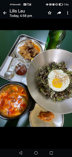 Read moreordered seafood tofu soup, fried chicken, bibimbap and beer. Portion of each dish was not big but enough for 2 of us to try since we wanted to try other things later. Bibimbap was refreshing but adding some meat would be better. we didn't order beef due to religious beliefs. The fried chicken was quite good but a bit oily. The tofu soup was nice as tofu was soft and soup was really nice. Overall, good for tourists like us since we wanted to try a little bit...