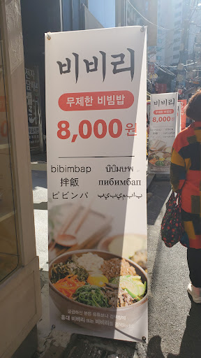 Read moreAll you can eat bibimbap for 6,000 won or ~$6 USD, you can’t really beat it. It’s located in the basement of one of the Hongdae shopping street shops. They have instructions in English, Korean and Chinese at the door on how the restaurant works.