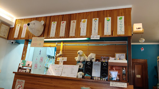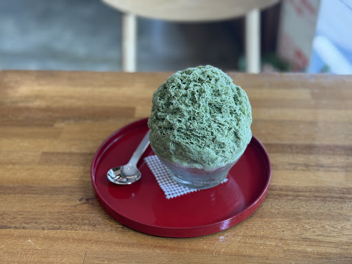 Super cute bingsu shop, ordered at the counter where all the flavors are listed also in English. We tried the red bean (milk based) and the seasonal green tangerine bingsu (water based) - both were very tasty, one creamy/mildly sweet with rice cakes, the other very refreshing and citrusy with candied tangerine slices. Portion size was good, price reasonable...
