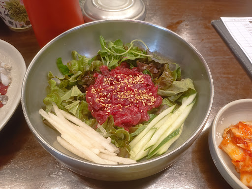 Read moreI went around 6 PM and there were already 77 groups ahead of me. It took about an hour and a half to get in, but once you register, they send you a text when it’s your turn, so I explored Gwangjang Market to pass the time. I ordered yukhoe, yukhoe bibimbap, and beef raw liver & omasum, and the dishes were served quickly. Everything was super fresh with great texture — absolutely amazing. The draft makgeolli I had there was exactly my taste. I definitely want to come back next time I...