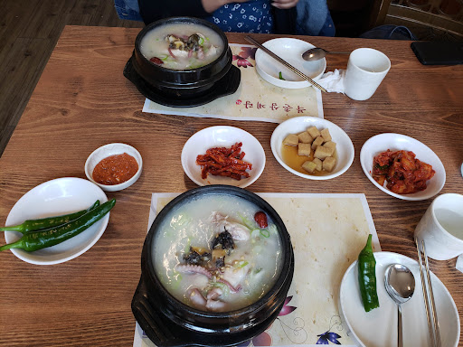 Good little samgytan place five minutes away from the Hanok Village but not touristy at all. They have an English menu now and the friendly owner will help you with suggestions. When we went we were the only tourists there, and the only other clients were a group who seemed to be regulars. After ordering the owner immediately put out some banchan for us, and we didn't wait long for our food. The samgyetang was good, with a nice thick broth, and the ginseng taste was not overpowering. They also provided some ssamjang to go with it, which was very tasty. Finally, we also ordered some bibimbap which was good, especially the thin-sliced squid. All of it was cheap for a tourist area and I would suggest it to anyone coming to the area who wants to get away from the crowds for...