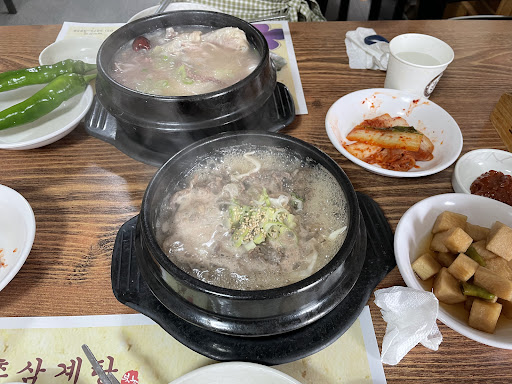 Read moreLocated near changdeokgung and changgyeonggung, ordered their samgyetang, because the portion already big, so 1 portion was for 2 people for me. Mineral water was free. The service quite fast and friendly, there were some local guests dine-in here. The taste was fresh and warm, loved it, the rice like sticky rice, had octopus inside. The ahjumma teach us how to eat chili with chili sauce, honestly, the chili not spicy at all, the chili was crispy, but local loved to eat this. The ahjumma also push me to tried bimbimbap, but i refused because i only want to eat samgyetang.