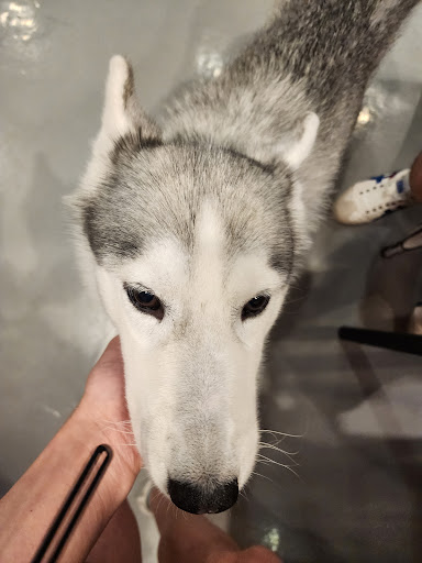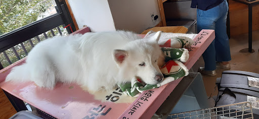 The café features adorable Samoyeds, along with other small and medium-sized dog breeds. The atmosphere was cozy and welcoming, with soft lighting and comfortable seating areas designed for both humans and their furry companions. As we entered, the gentle sound of paws padding across the floor and the cheerful barks of playful dogs filled the air.
