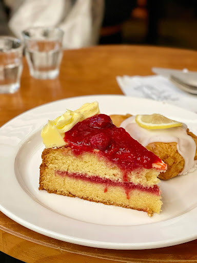 𝗩𝗶𝗰𝘁𝗼𝗿𝗶𝗮 𝗛𝗼𝗺𝗲𝗺𝗮𝗱𝗲 𝗕𝗿𝗶𝘁𝗶𝘀𝗵 𝗖𝗮𝗸𝗲 (𝟴.𝟬₩) Their cakes were straight out of a drawing with perfect even layers and a bright red raspberry sauce dyeing the sponge red. The sponge was moist and the sweetness was balanced with the tartness from the raspberry sauce. Every bite of this cake was delightful and paired so well with their hot drinks!