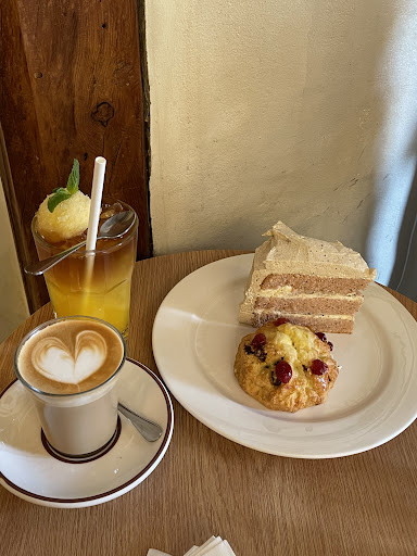 Read moreWe literally ran in here because it started raining outside and was welcomed by a cozy white interior, gorgeous scones and layered cakes on display, and the smell of freshly brewed coffee and bakes wafting through the air. What a perfect vibe that stole our hearts!