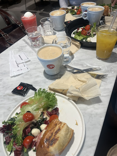 Reasonable coffee. Good cafe food of a good portion size. Plenty of indoor seating with lots of places to recharge your devices. Customer service. This is where this place fails miserably. Not even a hello upon the four of us entering. The place was quiet. Stood at the counter to order whilst two female staff ignored us for a couple of minutes. Four of us ordered coffee and drinks. Paid at the counter prior to eating. No table service. No response of thank you once we paid. When the food and drinks were ready and we were seated approximately four meters away rather than bring the food to us, she called out the number. Picked up the food. Said thank you to her. She did not respond. Unloaded the food onto our table. had to ask for sugar. She provided a couple of sachets to us as if she was giving us one of her kidneys Finished our main meals. None of the staff came over to clear the table. We ordered more food. We packed up our table and cleared it for the staff bringing it up to the counter. They did not even think to say thank you. Both of these staff members would be better served working at a funeral service or Genghis...