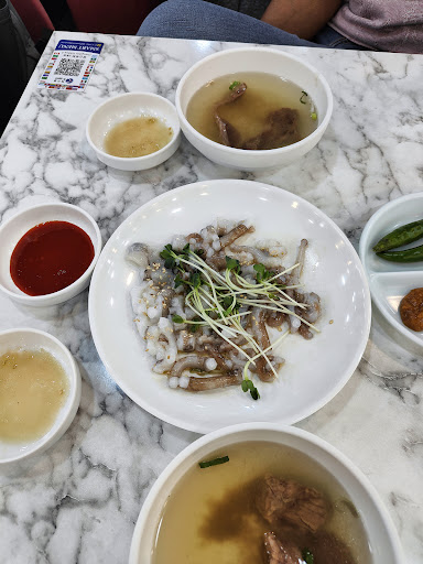 Changsin Yukoe is located within Gwangjang Market. We popped in to try sannakji (raw octopus) and they had no issues with us just ordering that one dish. They even served us complimentary beef soup which had a nice savoury flavour. The sannakji was served in sesame oil. It didn't have much flavour but there's gochujang and doenjang on side for that. The primary point of interest for me was the texture and interesting sensation of the tentacles suctioning the tongue. Overall, a good spot to try this dish and we found service to be very welcoming and friendly with reasonable prices (krw 15,000 for...
